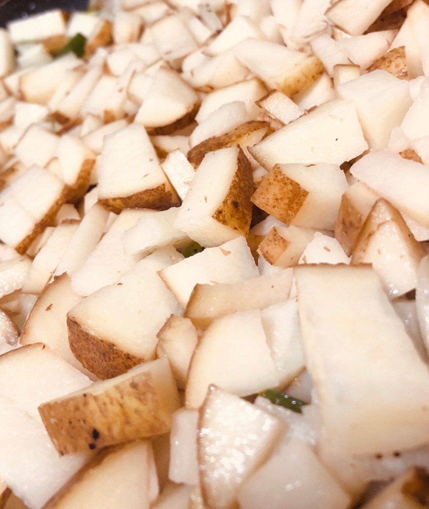 2. Cook the Potatoes: In the same skillet, add a bit more oil if needed and add the diced potatoes. Cook until they are golden brown and crispy on the outside and tender on the inside. Season with salt and pepper to taste. Remove from the skillet and set aside.