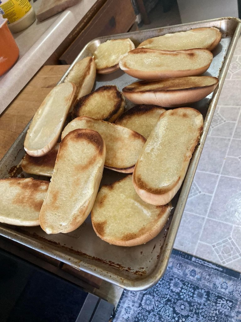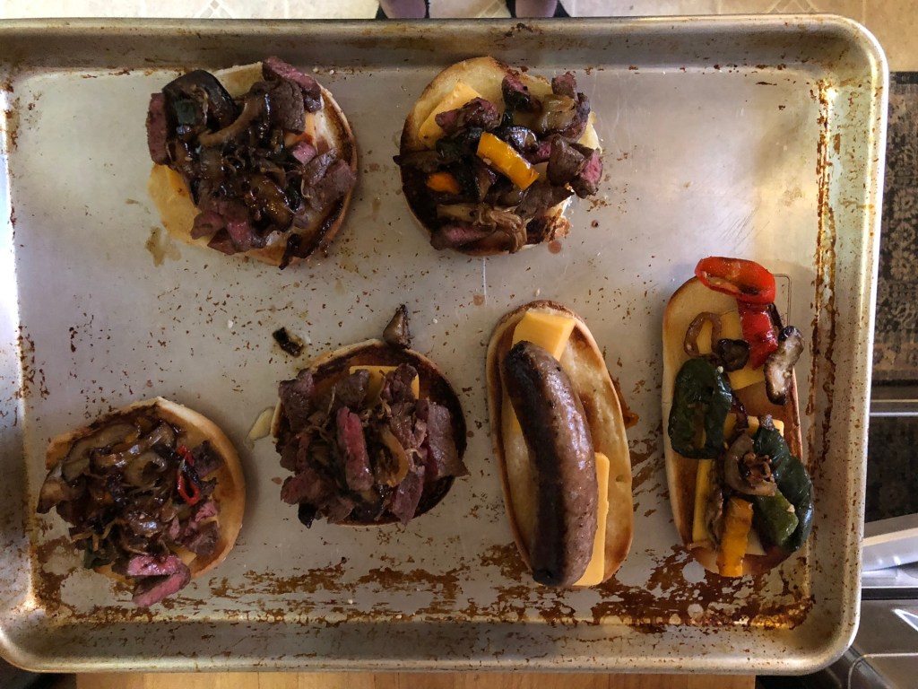 Steak & Bratwurst Sandwiches—can you believe it? Who just shows up to someone’s house, and gets served a Homemade Steak Sandwich Or Bratwurst—of my own choosing?! It just doesn’t happen—well, except that one place, called Jenn’s Kitchen. Hehe 😜 Or Sister’s Kitchen—I should call it.