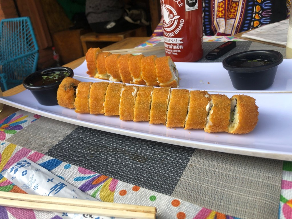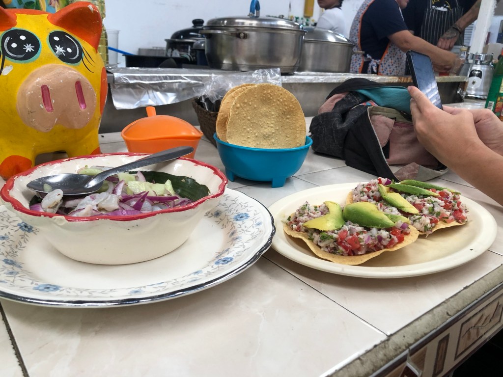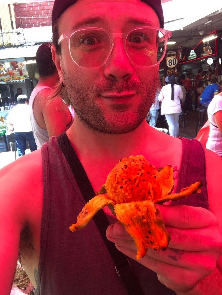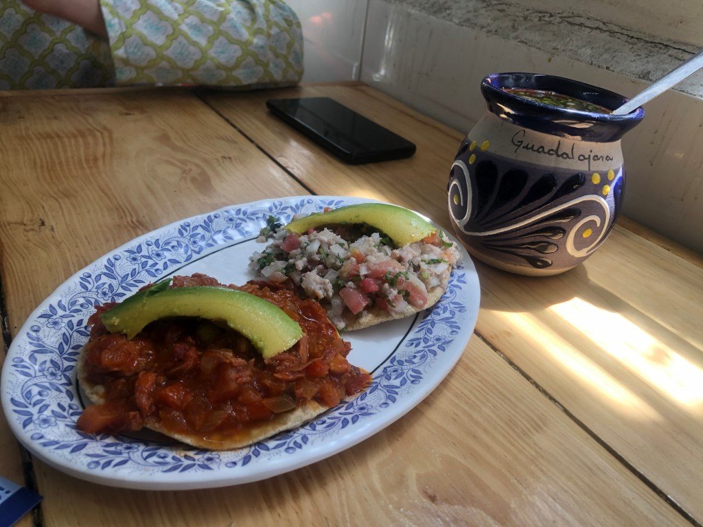 After PVâI didnât necessarily Plan on staying in GuadalajaraâI was planning on going to MExico Cityâhowever, I missed TWO FLIGHTS in the same dayâand decided to see what was around me. My first meal in Guadalajaraâwhich was very close to one of the airbnbâs I had bookedâunbeknownst to me, There are so many churchesâone could host a church tour, if they were inclined. Casa Dolores for Breakfast, before the city tour! It was a MUSTT GO-TO. City Tourâwas amazingâand would highly recommend. I preferred this City Tour over PV. Me, eating a random fruit that my guide handed me. The birds wanted their photo takenâbeing in a cage doesnât come with much excitement.Guadalajara has some of the most beautiful art. FREE FUCKING PALESTINE. Photo from my Airbnb WindowâI got very lucky. Day #1 was city tourâDay #2 was A HOT SPRING ADVENTURE! Divorced Chilaquilesâfor breakfast before our hike to the Hot Springs. Tracy (guest) and tour guide! We became fast friends! Tracy and I toured the beautiful city of Tlaquepaque! My first PulqueâI got Ginger, for some silly reason. California Roll, and Salmon roll, both deep fried!Ceviche Toasty This was our last meal of the day-before we departed. That day we had Sushi, (seen above), A ceveche toasty, and then tacos! The next day, after the HS adventureâTracy showed me the best stop to get a cheap and tasty toasty. Photo evidence of our breakfast. Maybe close to $5 USD Aqua-chili on the left, and toasty on the right. The Universe showed me a couple of cute things along my way. Validation that I was right on track. For lunch that same dayâI had to treat myself to a tamaleâfresh on the street. We got tuckered out from walkingâ-and decided to DIDI some food back to her apartment. The place was called âLasagnaââwe got Lasagna, no surprise. I met another friendâwho also went to massage school, like meâwe exchanged massages, and Reiki. Atocheâmy airbnb host (featured in the last photo), treated me to the tastiest tamale for breakfast. Her, and her husband were artistsâand partnered on this art pieceââSourceâ as I would call it.. This is how they pictured the universe being. Golden light emanating from a center point. Day 3, or 4âin the BIG G. We discovered a tasty spotâto share a Marlin Toastyâand a ceviche. ANDDDD, this was probably one of the bigggest treatsâshe showed me a dumpling placeâthat had colorful exteriors, and meat, or chocolate filled centers! We got a beef, and chocolate. I had to capture the owner! He was very friendly! I got their business cardâbut I think I lost it. đŚ It was called âDumplings IkuraââWELL WORTH THE VISIT YALL.