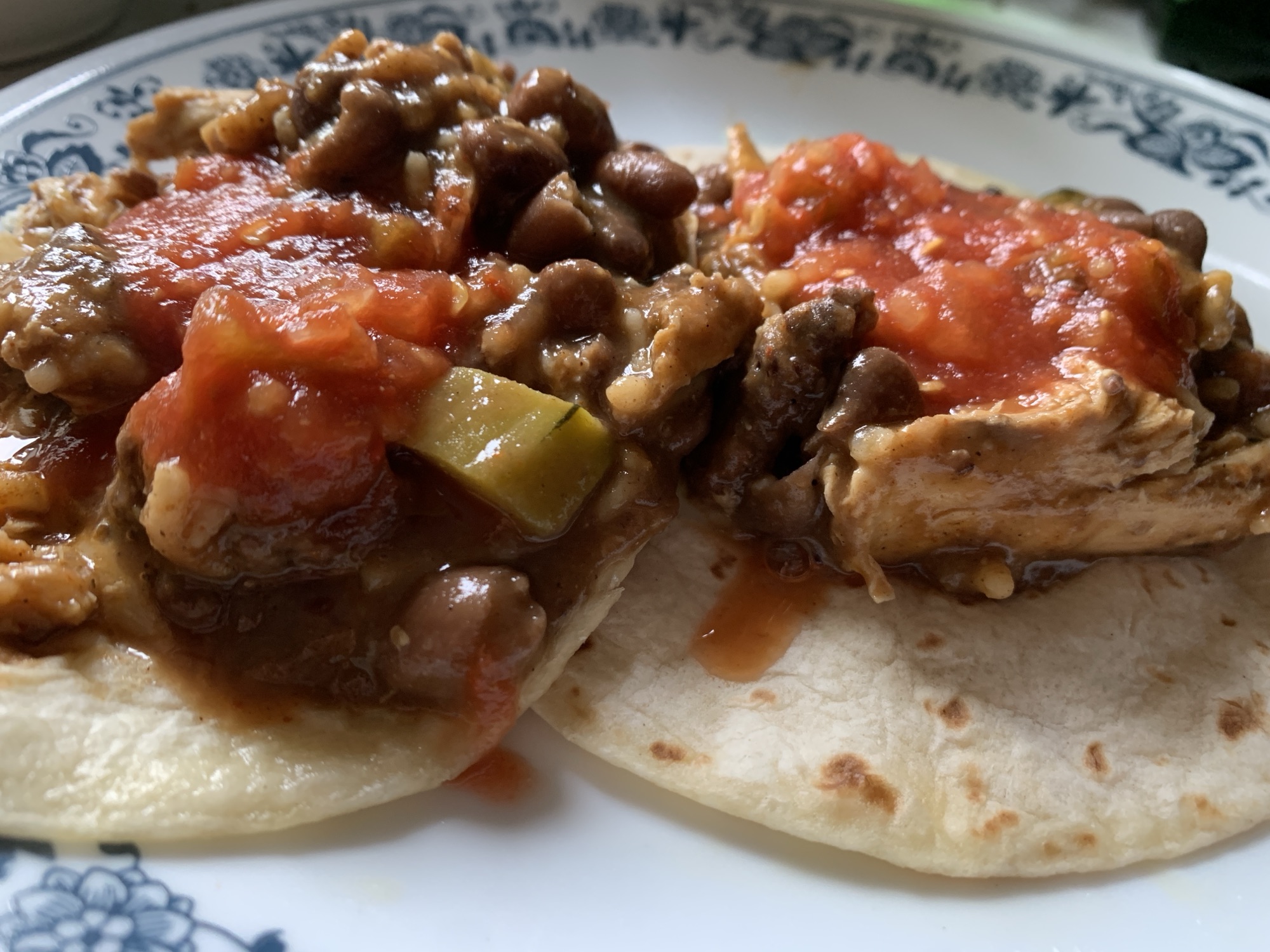 And babes, I promise, I will never cheat on you; anything I eat, you’ll know about it. Therefore, for today’s lunch: “Sloppy Bean & Chicken Tacos”. Featuring, black/pinto beans, chicken, zucchini, and tomato.