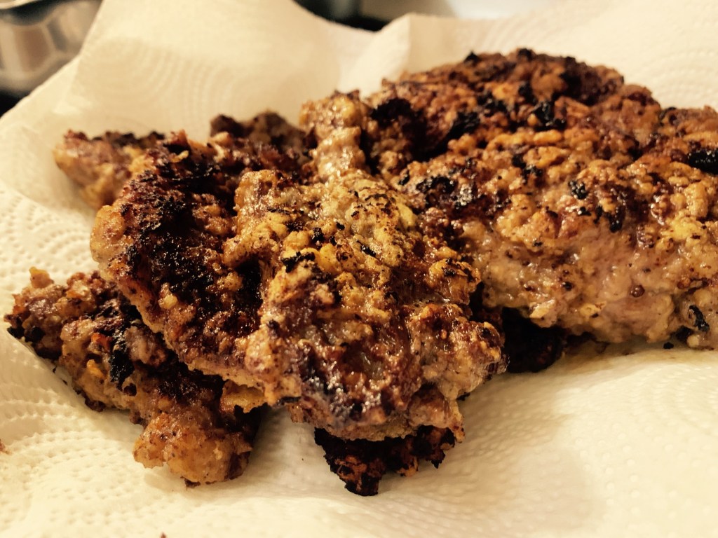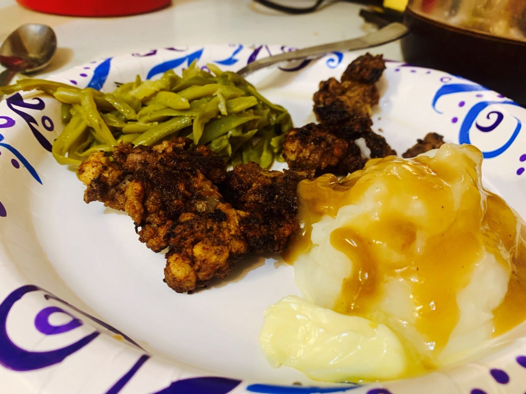 My Dad, yet again, surprised me with another delicious bite. He pulled a pack of steaks from the freezer, dethawed, and pounded them into formation. Floured, and fried them to perfection; literally.