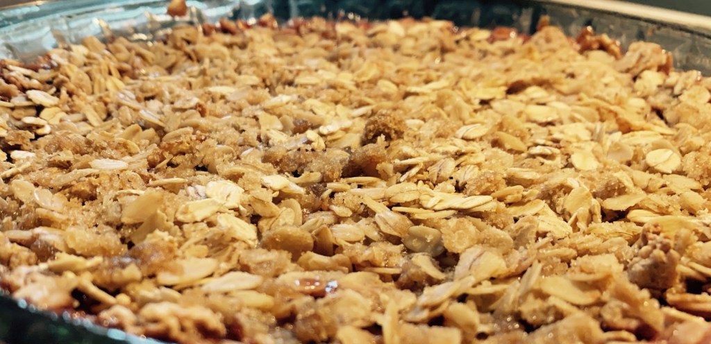 Bake in the preheated oven for about 35-40 minutes, or until the topping is golden brown and the filling is bubbly. - Serve: