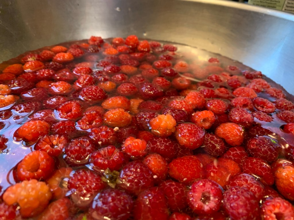 Every year we eat ourselves stupid with fruit: peaches, grapes, raspberries, and strawberries—we have a ball!