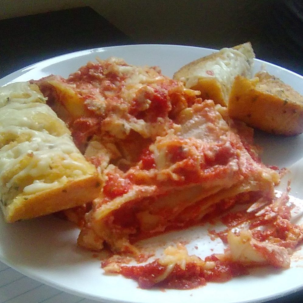 The Lasagna I am posting was made by someone else, but damn, it was freaking tasty! My poor little flip phone could scarcely capture its divinity! And of course, where there is a Lasagna, there ought to be delicious garlic bread, to boot. AND THERE WAS!