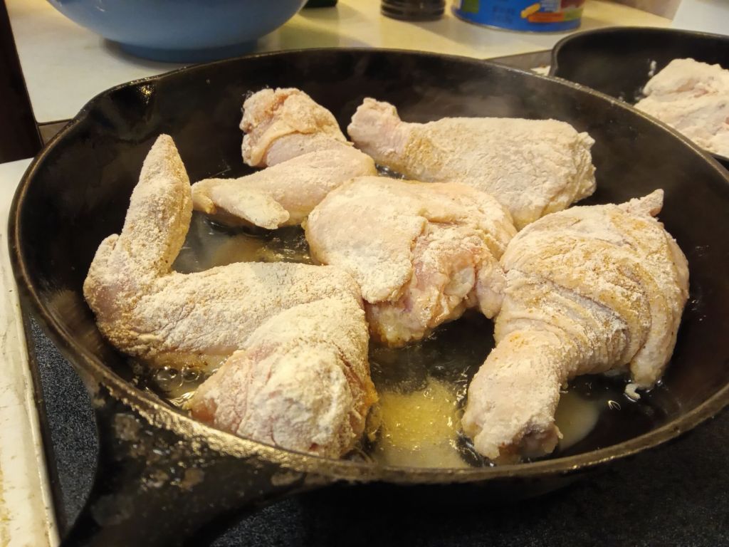 The tricky part about frying chicken is getting a golden coat, and thoroughly cooking the chicken to temp. Often times the skin and coating will cook beautifully, and the middle be raw. There is no shame in having to finish your chicken in the oven, folks.